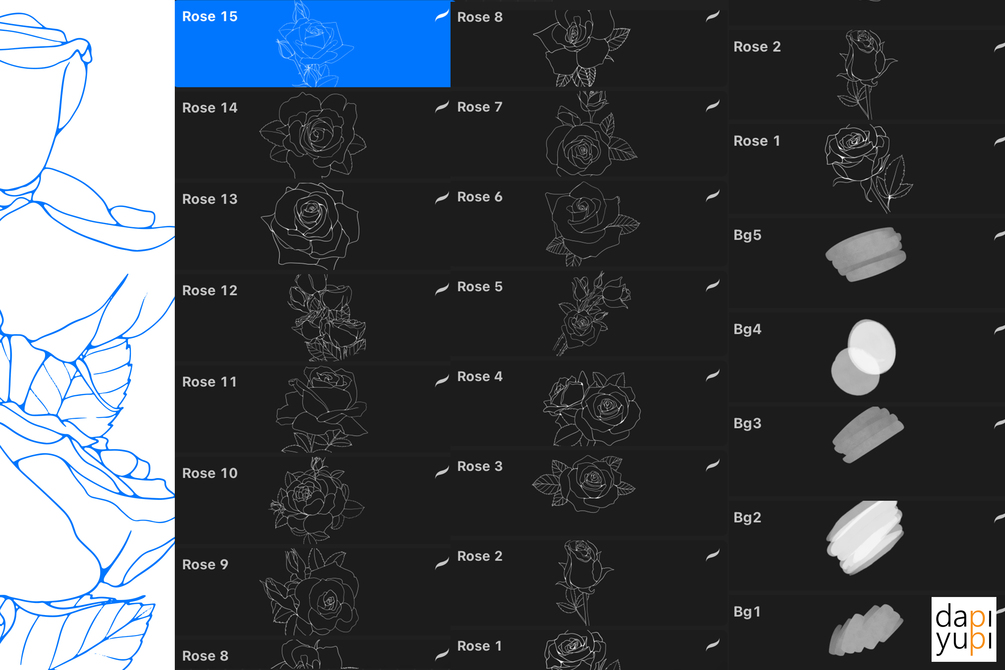 You'll Get 15 stamps Roses brushes +5 abstract background for the Procreate app